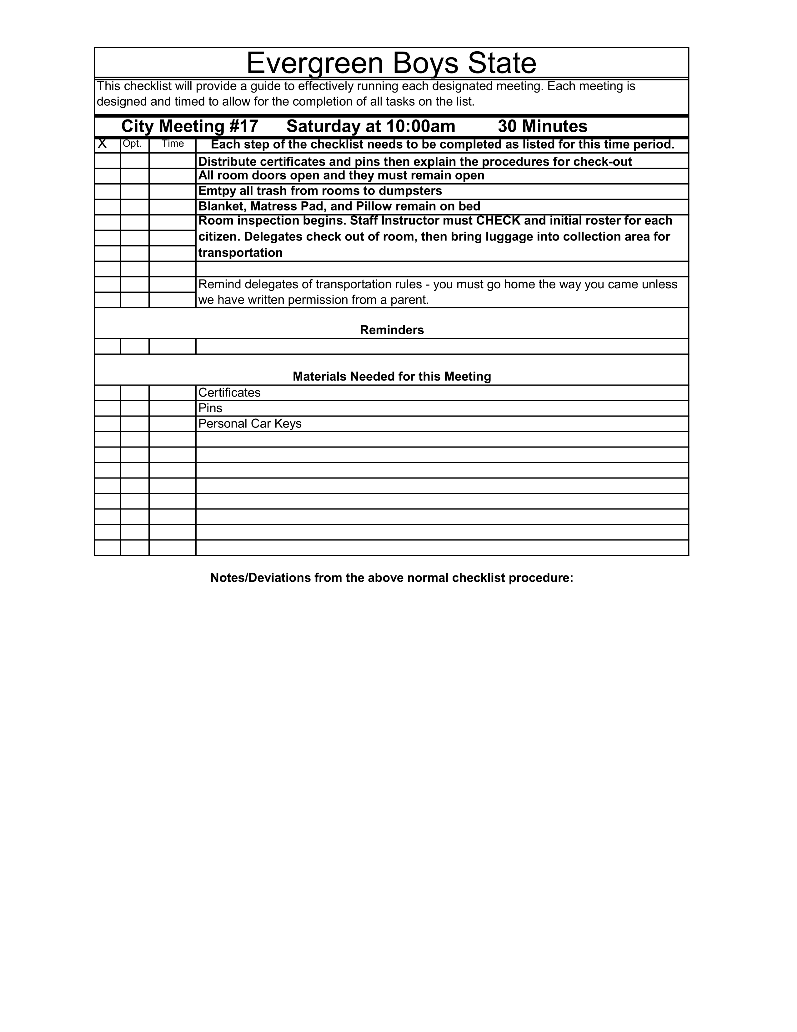 Meeting Checklists